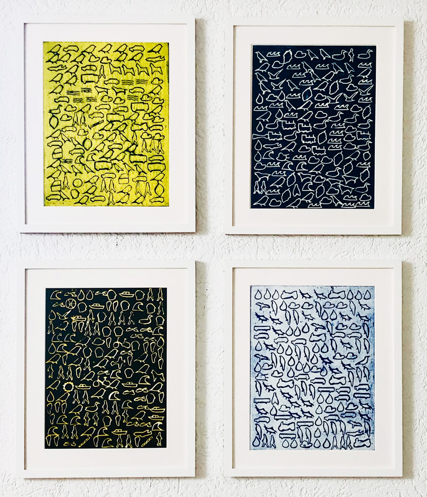 Technik: Holzstempel auf Japanpapier / Wooden stamps on paper