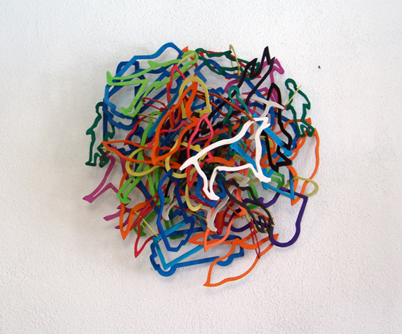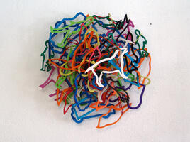 Mirja Wellmanns künstlerisches Interesse gilt der Wahrnehmung von Geräuschen, an einem konkreten Ort und in einem bestimmten Zeitraum, registriert mit dem Sensorium des Hörens. Die Künstlerin überträgt diese Hörwelten in zeichenhafte und informelle Geräusch- und Klangbilder, die zu Partituren der Imagination werden, wie dies John Cage Anfang der 1950er Jahre in die Sphäre der Musik eingeführt hat. Auf der einen Seite entwickelt die Künstlerin eine Ikonographie der Geräusche und Klänge und verdichtet ihr Dasein in der gehörten Welt, die sie umgibt, in entsprechenden Bildkonzepten und Projekten. Auf der anderen Seite geht es um die Erforschung der Möglichkeiten dieser plastischen, zeichnerischen, in Buchstaben, Worten und zeichenhaften Formen gefassten Bilder, um ihr Potenzial, mit den visuellen Eindrücken die Imagination von Geräuschen im Betrachter hervorzurufen. Das Bild verkörpert die Brücke zwischen der sinnlichen Wahrnehmung von Welt und ihrer Konstruktion in einem synästhetischen Vorstellungsvermögen angesichts der Kunstwerke der Künstlerin.